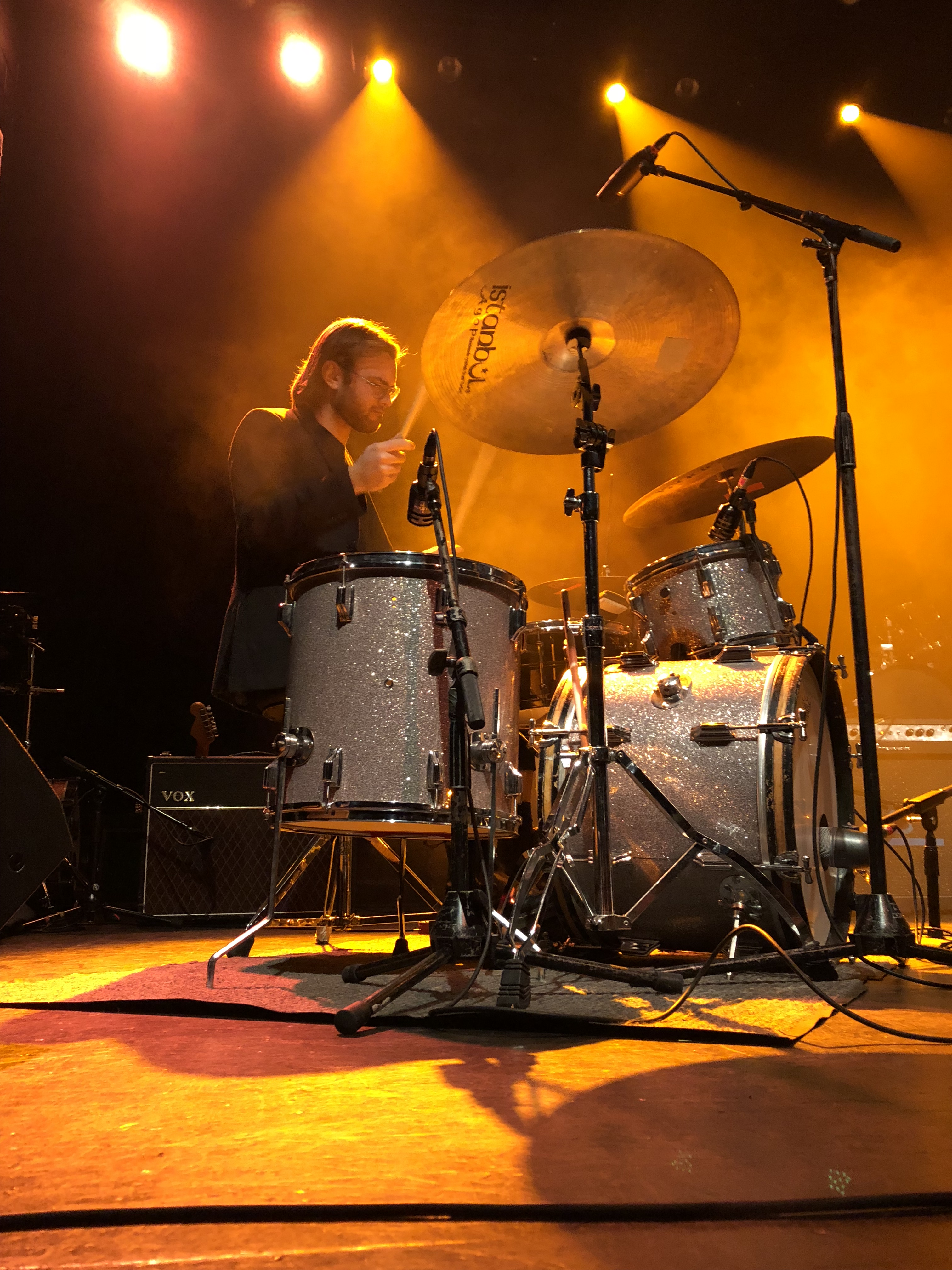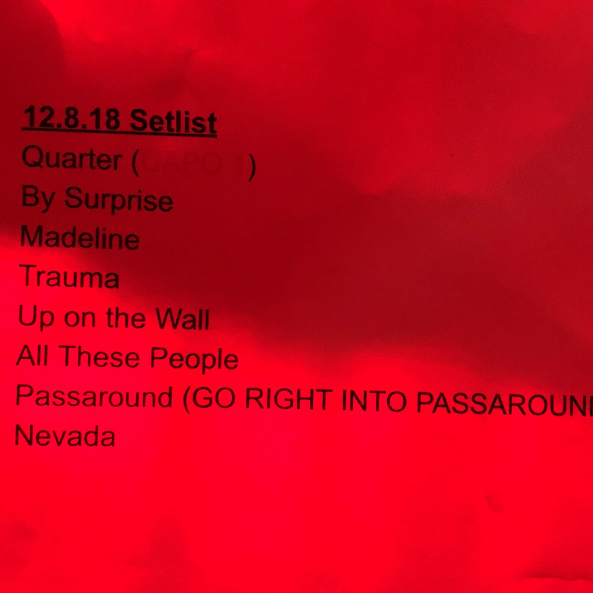 Monday December, 10– Keeping this secret between us, we packed our bags and made the four hour trip up to Raleigh. As we approached the venue, we messaged Sam to let him know we were 30 minutes away, and excited to help. We found a parking garage not too far away, and walked to the venue. Inside, they were setting up their set, and tuning their instruments. Sam greeted us with a hug, and thanked us for helping. He reintroduced us to Christine, and she gave us the run down of what the job would entail. The other members made their way down and chatted with us before the show and asked us what songs we wanted to hear.