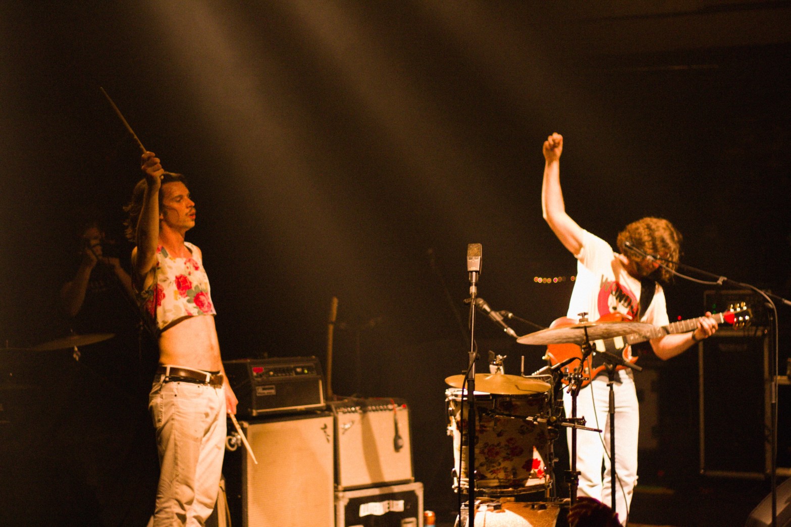 Before the interview, we had the opportunity to take pictures of the band while singing and dancing to their songs. They opened with their hit “Nuthin’s Fair” and had the whole crowd bobbing their heads and moving to the music. They played through songs off of their EP, Sweet Beast and played an outstanding cover of “Vampire Blues” by Neil Young. You could tell that the crowd was surprised that two people could create the sounds that they were creating. By the end of their set, you could tell that the audience was impressed and eager to listen to more of their stuff!